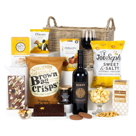 Elegant and indulgent, The Luxury is a show-stopping hamper filled with fine food and wine. Featuring Vinoir Merlot, savoury nibbles, biscuits, cake, chocolate and honeycomb, it’s beautifully presented in a greywash willow basket, the perfect gift for any special occasion. This hamper contains 9 items: British Bakes & Cakes Carrot Loaf Cake 290g Brown Bag Crisps Lightly Salted Crisps 150g Grandma Wild’s Butterscotch Biscuits 150g Mighty Fine Salted Caramel Honeycomb Dips 90g Mr Filbert’s Sweet Chilli Rice Crackers 40g New York Delhi ViP Nuts Honey Roasted Peanuts 63g Popti Cornish Bakehouse Oat & Buttermilk Crackers 120g Stas Chocolatier Decorated Milk Chocolate Bar 100g Merlot Vinoir Chile 75cl 12.5% vol Packed in a willow basket.